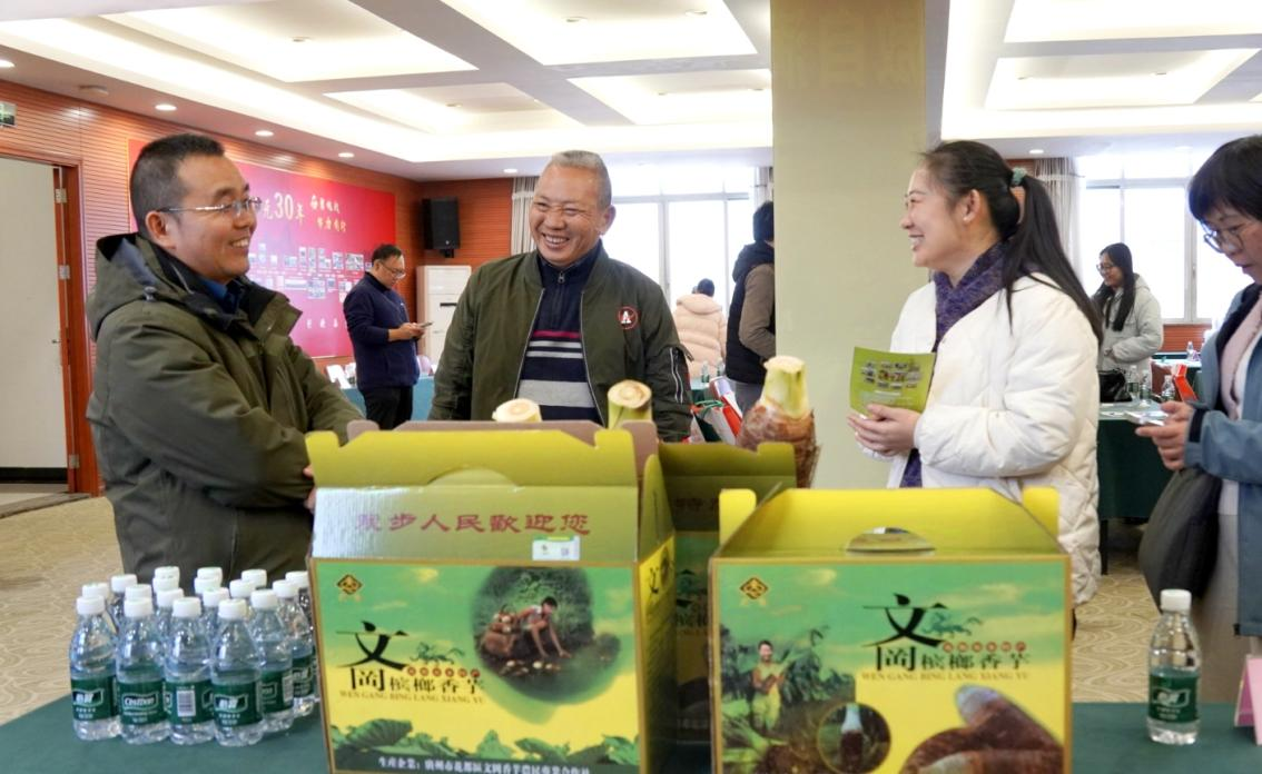 为有效衔接产销,会议同步举办特色农产品展示推介与对接洽谈活动。各镇街组织本地优质农产品到场展示,涵盖20余款全国名特优新农产品、“粤字号”农产品。活动现场还设置洽谈区,方便采购商、企业与生产主体进行直接沟通,促成合作意向。通过产销直接对接,有效拓宽花都本地农产品销售渠道,推动建立更加稳定的产销关系和订单农业模式,带动乡村产业发展效益惠及更多农民。
